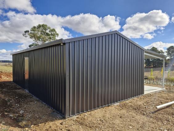 This 10m x 5m x 2.5m shed in Millthorpe was designed to make the most of its surroundings, with a 3m awning providing a covered space to take in the vineyard-lined rolling hills. Built using Australian-made BlueScope steel and COLORBOND materials, it’s engineered to suit the site while offering practical use and a clean, functional finish.